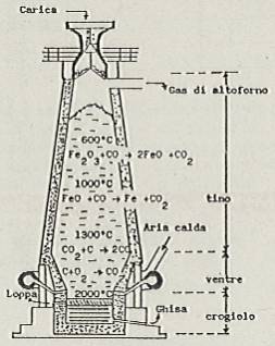 (siderite). I minerali vengono ridotti con coke nell'alto forno. E'